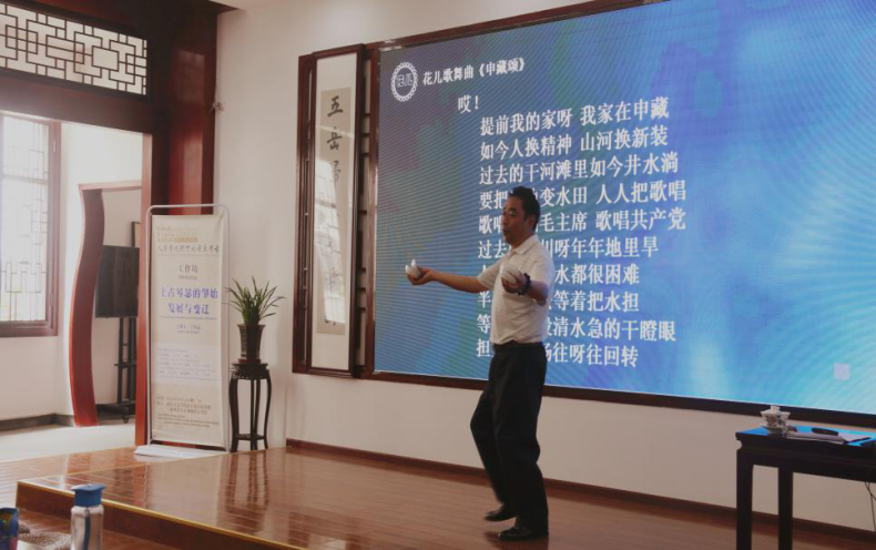 讲座中,李生贵教授时常舒展歌喉,以歌举例,随歌起舞,在讲授“花儿”曲令时演唱了各曲令的几首代表曲目并教习同学们演唱“花儿”《尕老汉》,现场学术交流气氛欢快融洽。